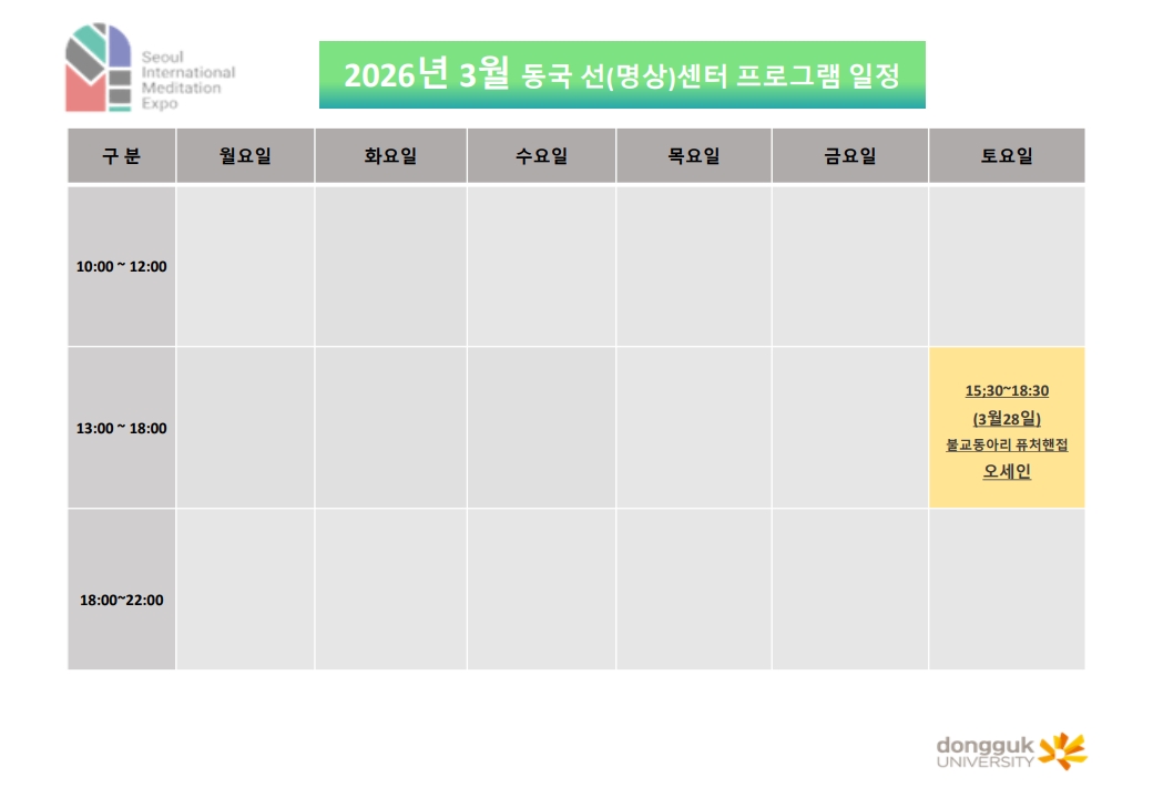 동국 선(명상)센터 2026년 3월 프로그램 일정